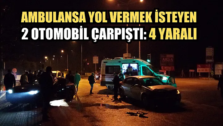 Ambulansa yol vermek isterken 2 otomobil çarpıştığı kazada 4 kişi yaralandı.