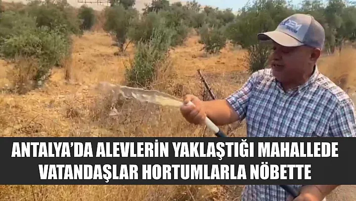 Antalya'da alevlerin yaklaştığı mahallede vatandaşlar hortumlarla nöbette