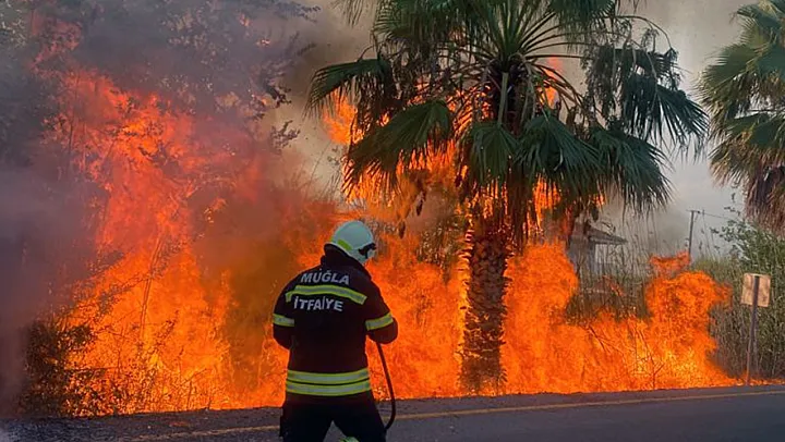 Muğla'nın Ortaca ilçesinde park halindeki araçta başlayan yangın yol kenarındaki ağaçlara sıçradı.