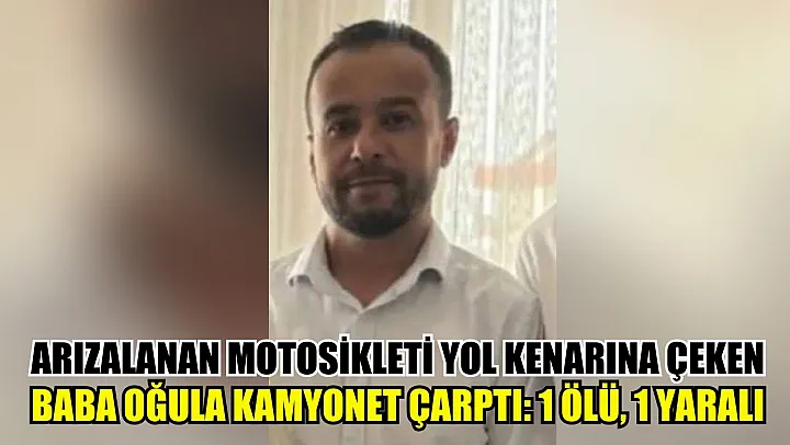 Yoldan geçen kamyonetin, arızalanan motoru kenara çekmeye çalışan baba ve oğluna çarpması sonucu meydana gelen trafik kazasında baba yaşamını yitirdi, oğlu ise yaralandı
