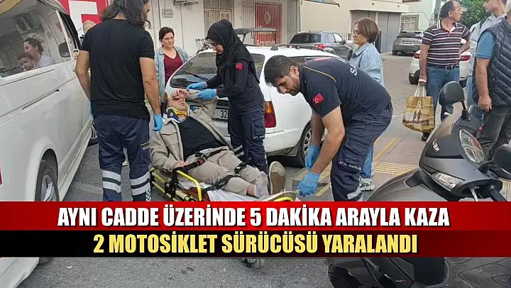 Antalya'nın Manavgat ilçesinde aynı cadde üzerinde biri hafif ticari araca, diğeri minibüse çarpan iki motosiklet sürücüsü 5 dakika arayla yaralandı.