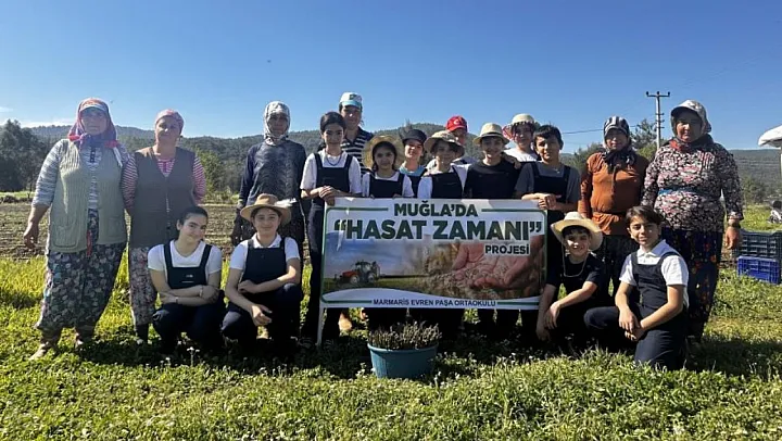 Muğla'da yetişen tarım ürünlerini tanımak amacıyla "Hasat Zamanı" adlı bir proje başlatan Marmaris Evren Paşa Ortaokulu öğrencileri, proje dahilinde Marmaris'ten yola çıkarak ürünlerin ekim, dikim ve hasadının yapıldığı tarlada hem ürünleri yakından tanıdılar hem de çiftçilerle sohbet edip tarımın önemini kavradılar.