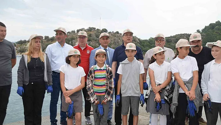 Muğla'nın Marmaris ilçesinde belediye başkanları ve öğrenciler temizlik için kolları sıvayıp, liman bölgesinde atık topladı.