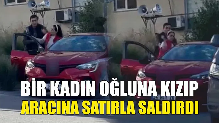 Bir kadın oğluna kızarak eline aldığı satırla aracına saldırdı. O anlar cep telefonu kamerasıyla kaydedildi.