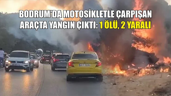 Muğla'nın Bodrum ilçesinde motosikletle hafif ticari aracın çarpıştığı trafik kazasında 1 kişi öldü, 2 kişi de yaralandı. Kaza sonrası araçta başlayıp ormana sıçrayan yangın ise söndürüldü.