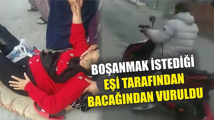 Bir kadın çocuğuyla sokakta yürüdüğü sırada boşanma aşamasında olduğu eşi tarafından bacağından vuruldu.
