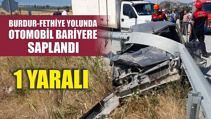 Burdur-Fethiye Karayolu'nda kontrolden çıkarak bariyere saplanan otomobil sürücüsü yaralandı.
