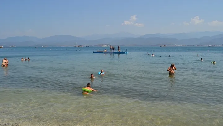 Uzun sahil şeridi ve mavi bayraklı plajları ile sıcak yaz günlerine denk gelen bayram tatilinde binlerce kişi Fethiye'nin plajlarına akın etti.