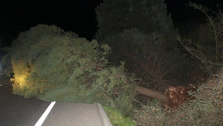 Muğla'nın Menteşe İlçesi'nde etkili olan şiddetli rüzgar ve fırtına nedeniyle çevre yolu üzerinde bulunan ağaç devrildi.