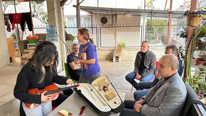 Ortaca Belediye Başkanı Alim Uzundemir, deprem bölgesinden ilçeye gelen vatandaşları ziyaretinde genç bir kızın keman talebi Başkan Uzundemir tarafından yerine getirildi.