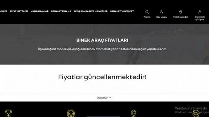 Renault firması internet sitesinden araç fiyatlarını kaldırarak fiyatlarda güncellemeye yapmaya başladı.