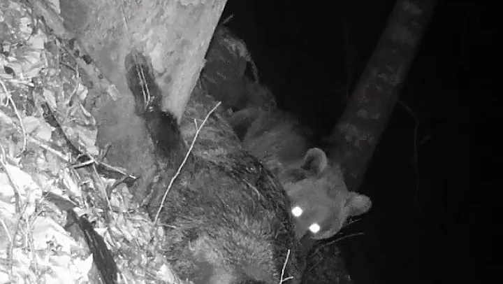 Çanakkale'nin Bayramiç ilçesi sınırlarındaki Kaz Dağları'nın kuzey yamaçlarında bir bozayının domuz yerken görüntüleri fotokapana takıldı.