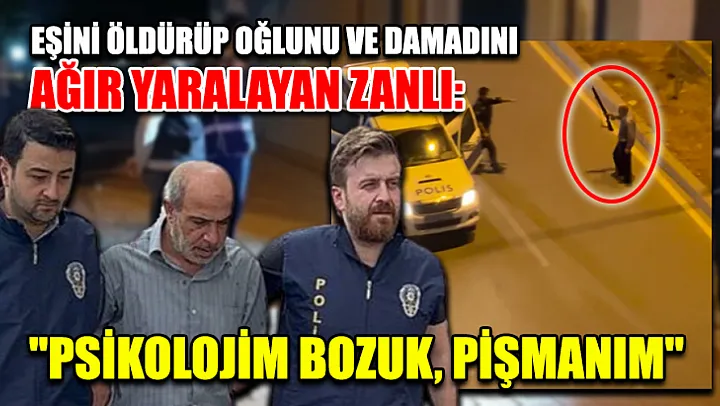 Eşini öldürüp oğlunu ve damadını ağır yaralayan zanlı: 'psikolojim bozuk, pişmanım'