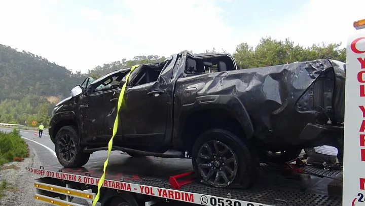 Kazada hurdaya dönen kamyonet, çekici yardımıyla bölgeden kaldırıldı.