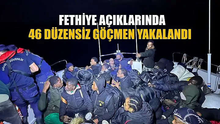 Muğla'nın Fethiye ilçesinde açıklarında lastik bot içerisinde 15'i çocuk toplam 46 düzensiz göçmen yakalandı.
