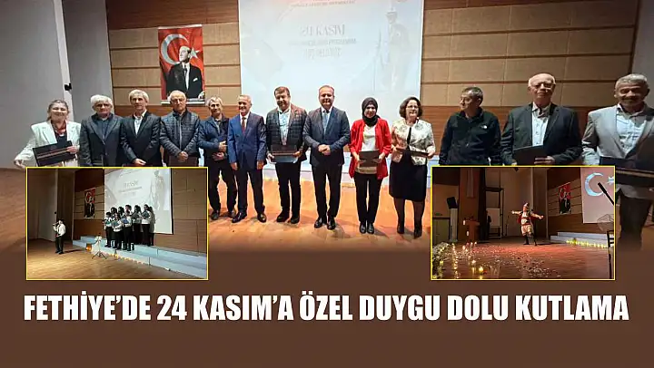 Fethiye'de 24 Kasım Öğretmenler Günü, Şehit Sümer Deniz Kız Anadolu İmam Hatip Lisesi Konferans Salonu'nda düzenlenen anlamlı ve yoğun katılımlı bir programla kutlandı. Kutlama programına Fethiye Kaymakamı Fatih Akkaya başta olmak üzere İlçe Milli Eğitim Müdürü Faruk Kaya, protokol üyeleri, okul yöneticileri, öğretmenler, öğrenciler ve veliler geniş bir katılım sağladı.
