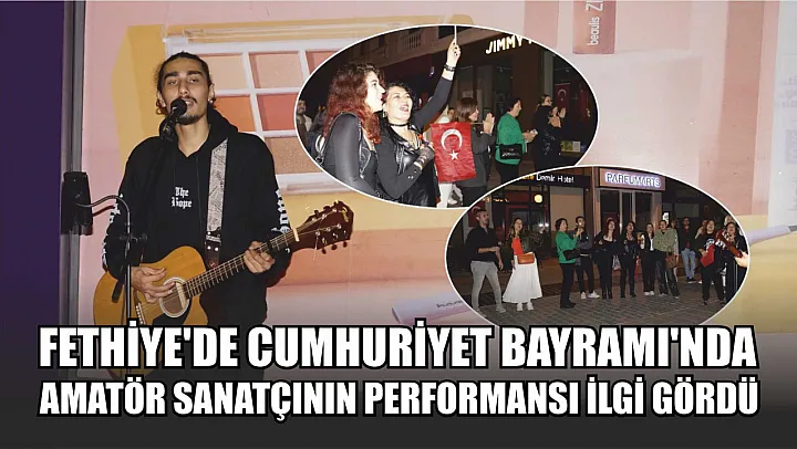 Cumhuriyet Bayramı kutlamaları sırasında Fethiye'nin Dispanser Sokak'ında bir amatör sanatçı, kendi çapında sergilediği performansla dikkat çekti. Sokakta yürüyüş yapan vatandaşlar, sanatçının seslendirdiği birkaç parça ile keyifli anlar yaşadı.