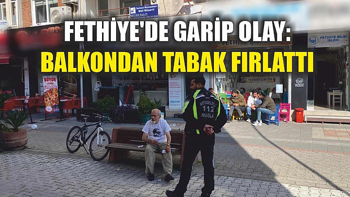 Fethiye'de garip olay: Balkondan tabak fırlattı