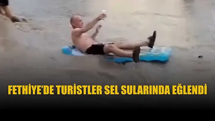 Muğla'nın Fethiye ilçesinde etkili olan sağanak yolları göle çevirirken, turistler sel sularında eğlendi.