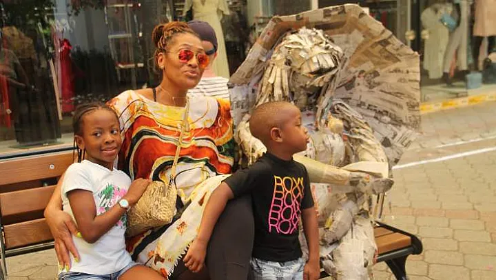 FETHİYE GAZETELERİNDEN YAPILMIŞ ŞEMSİYELİ HEYKELE TURİST İLGİSİ