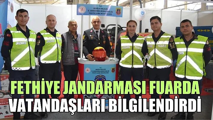 Fethiye'de kurulan tarım ve turizm fuarında jandarma ekipleri vatandaşları trafik güvenliği konusunda bilgilendirdi.