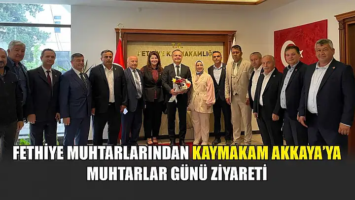 19 Ekim Muhtarlar Günü dolayısıyla Fethiye Muhtarlar Derneği Başkanı Cafer Söğüt öncülüğünde, ilçede görev yapan mahalle muhtarları Fethiye Kaymakamı Fatih Akkaya'yı makamında ziyaret etti.