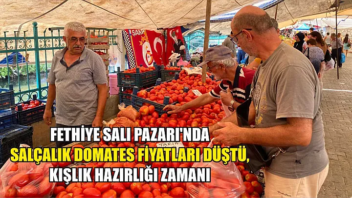 Kış aylarında sofraların vazgeçilmezi olan salça için domates arayışında olan vatandaşlar, Fethiye Salı Pazarı'nda birbirinden lezzetli ve taze domateslere ulaşabiliyor. Pazar esnafı, Salçalık döneminin bitimine yaklaşılması nedeniyle fiyatların düştüğünü ve vatandaşların bu durumdan memnun olduğunu belirtiyor.