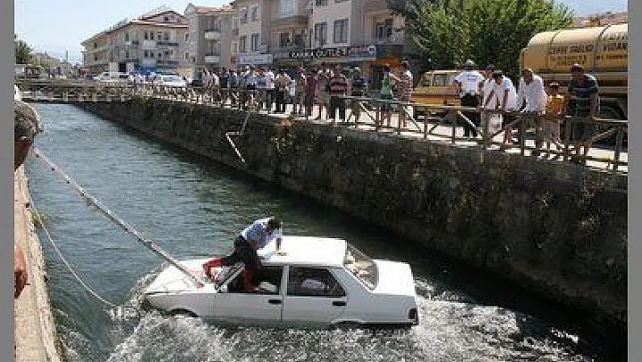 Fethiye'de su kanalına düşen otomobilin içinde mahsur kalan sürücüyü itfaiye ekipleri kurtarırken, olay yerine gelen sürücünün eşi ve küçük oğlu gözyaşlarına boğuldular. Edinilen bilgiye göre; Fethiye'de İnönü Bulvarı üzerinde seyir halinde olan Mehmet Ç (35) idaresindeki 48 GA 244 plakalı otomobil sürücüsünün ani fren yapması nedeniyle yoldan çıkarak su kanalına uçtu. Kanalda hızla akan suyun içerisine tekerlekleri üzerine düşen otomobildeki sürücü aracında mahsur kaldı.Olayı gören vatandaşların müdahalesine rağmen aracından çıkmak istemeyen ve şoka girdiği tahmin edilen sürücü için bölgeye itfaiye kurtarma ekipleri çağırıldı. Kısa sürede olay yerine ulaşan itfaiye ekipleri önce bir ip yardımıyla otomobili sabitleyerek suda sürüklenmesini önlediler. İtfaiye ekipleri otomobili iple sabitleyerek sürüklenmesini önlerken araçta bulunan sürücü Mehmet Ç'nin telefonla konuşmaya devam etmesi dikkat çekti. Alınan önlemlerin ardından itfaiye ekipleri tarafından otomobilin üzerine bir merdiven indirildi. Otomobilinden çıkması için ikna edilen sürücü önce aracının tavanına çıktı daha sonrada uzatılan merdivenle kıyıya çıkarıldı. Görünüş itibariyle yaralanmadığı belirlenen sürücü tedbir amacıyla hazır bekletilen ambulansla hastaneye kaldırıldı. Ambulansın bölgeden ayrılmasından kısa süre sonra sürücü Mehmet Ç'nin eşi Mine ve 5 yaşındaki oğlu Yusuf kaza yerine geldiler. Su içindeki otomobili gören anne ve oğlu gözyaşlarına boğuldular.Çevredeki vatandaşlar tarafından sakinleştirilmeye çalışılan anne ve oğlu hemen hastaneye koştular. Kazayı gören görgü tanıkları ise otomobilin yolda bulunan kasise yavaş girmek için fren yaptığı sırada kontrolden çıkarak kanala uçtuğunu anlattılar.