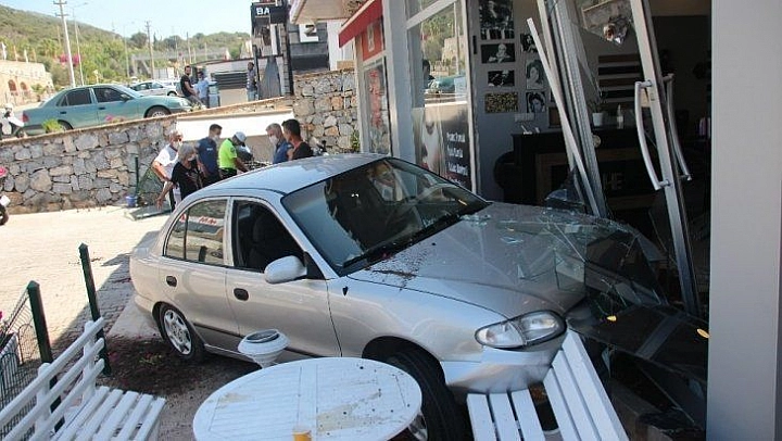Muğla'nın Bodrum ilçesinde sürücüsünün fren yerine gaza bastığı otomobil, kontrolden çıkarak bir kuaför dükkanına girdi. Kuaför önünde oturan 2 kişi, canlarını zor kurtardı.