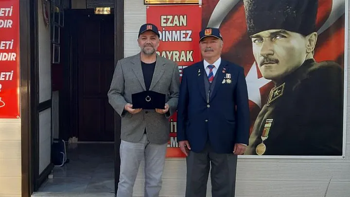 Fethiye Muharip Gaziler ve Şehit Aileleri Yardımlaşma ve Dayanışma Derneği Başkanı Namık Ünal Emrah Doğu'ya iftar yemeğine katkılarından dolayı teşekkür ederek hediye takdim etti.