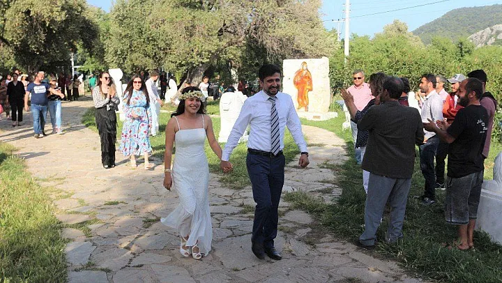 Böyle bir etkinliğe ev sahipliği yaptıkları için çok mutlu olduklarını belirten Uluslararası Knidos Kültür Sanat Akademisi Başkanı Nevzat Metin ise, "Gelinimizin annesi, babası ve dedesi akademimizde bulunan taş binanın içinde öğrencilik yapmışlar. Onun için kızımızın hayaliydi burası. Onun için burada nikahlarını kıyıyorlar. Onlara yaşam boyu mutluluklar diliyorum" diye konuştu.