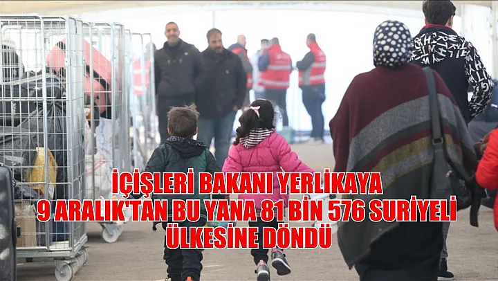 İçişleri Bakanı Ali Yerlikaya, 9 Aralık 2024'ten bu yana 81 bin 576 Suriyelinin gönüllü, güvenli, onurlu ve düzenli şekilde ülkesine döndüğünü bildirdi.