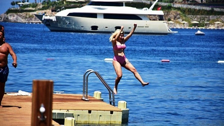 Kurban bayramı tatilini Bodrum'da değerlendiren İrem Derici önceki gün Yalıkavak'ta bir beach görüntülendi. İskeleden denize atlarken objektiflere takılan Derici yaklaşık 2 saat denizde kaldı. Denizin tadını doyasıya çıkaran İrem Derici'ye menajerinin de eşlik ettiği görüldü.