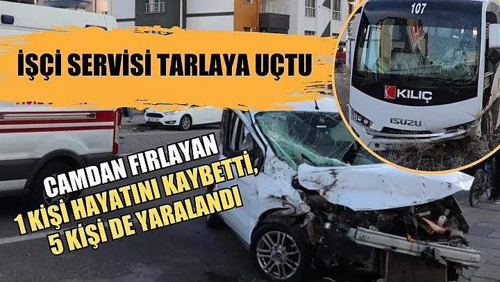 Kayseri'nin Melikgazi ilçesinde hafif ticari araçla çarpışan işçi servisinin tarlaya uçması sonucu servisin camından fırlayan 1 kişi hayatını kaybederken, 5 kişi de yaralandı.