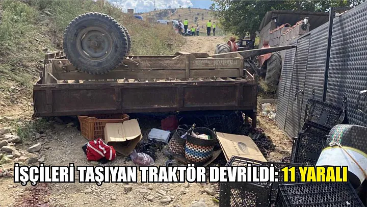 Üzüm işçilerini taşıyan traktör, rampa yukarı çıktığı sırada geri geri gitmeye başlayınca önce işçilerin olduğu römork devrildi ardından da traktör römorka dayanarak durabildi. Kazada römorkta bulunan 10 işçi ile traktör sürücüsü yaralandı.