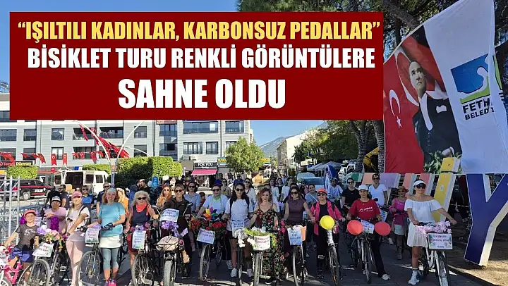 Fethiye Belediyesi'nin İklim Değişikliği ile Mücadele Haftası etkinlikleri kapsamında düzenlediği 'Işıltılı Kadınlar, Karbonsuz Pedallar' Bisiklet Turu, kadınların rengarenk süsledikleri bisikletleriyle katıldığı keyifli bir organizasyonla gerçekleşti.