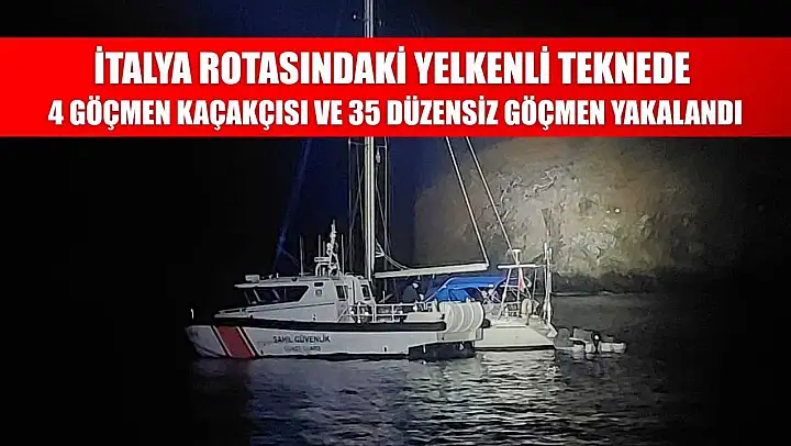 İtalya rotasındaki yelkenli teknede 4 göçmen kaçakçısı ve 35 düzensiz göçmen yakalandı