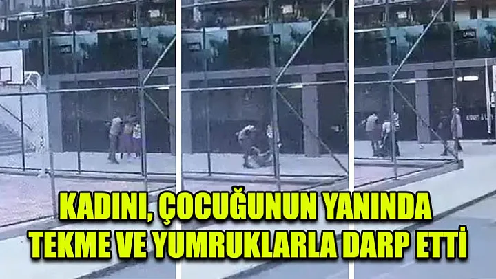 Kız çocuğuyla beraber yürüyen bir kadın, sözlü tartışma yaşadığı bir erkek şahıs tarafından sokak ortasında darp edildi. Şahıs yere düşürdüğü kadını çocuğunun yanında tekme ve yumruklarla darp etti. O anlar güvenlik kamerasına yansıdı.