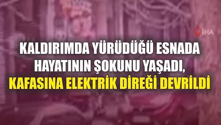 Kaldırımda yürüdüğü esnada hayatının şokunu yaşadı, kafasına elektrik direği devrildi