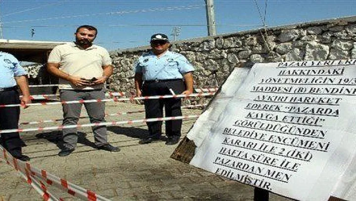 Fethiye İlçesinde kurulan semt pazarında peynircilik yapan iki esnaf bir birleri ile kavga edince işyerleri de Fethiye Belediyesi Encümen kararı ile pazarın düzenini bozdukları gerekçesi ile iki haftalığına kapatıldı.Yerleri kapatılan kavgacı pazarcı esnaflarının tezgah kurdukları yerlere Fethiye Belediyesi Zabıta ekipleri tarafından şerit çekilerek iş yerlerinin neden kapatıldığı ile ilgili de yazı asıldı.Fethiye'de her hafta Salı günleri kurulan bölgenin en büyük semt pazarı geçtiğimiz hafta iki esnaf arasında yaşanan müşteri kavgası pazarda alışveriş yapan müşterileri ve diğer esnafları rahatsız etmesi üzerine Fethiye Belediyesi Zabıta Müdürlüğü ekipleri devreye girdi. Salı pazarındaki esnafları dolaşan Fethiye Belediyesi Zabıta Müdürü Tufan Kaçar ve zabıta ekipleri, müşteri kapma yüzünden kavga eden iki esnafa 2 hafta kapatma cezası verildi.Salı Pazarının Fethiye için bir örf, adet, ticaret ve turistlik merkez olduğunun altını çizen Fethiye Belediyesi Zabıta Müdürü Tufan Kaçar şunları söyledi:'Salıpazarı bizim için önemli, biz Salı pazarında bugüne kadar esnafımızın rahat çalışsın için önlemler aldık. Tabi esnafımız rahat çalışırken kazanç elde ederken dikkat ettiğimiz bir husus daha var. Gelen misafir ve Fethiyelilerin rahat alışveriş yapabilmeleri. Hiç kimse başkasının hakkını yemeden o ahilik kültür ile burada esnaflığını yapmak durumunda. Biz burada kimsenin ekmeği ile oynamak, yerini kapatmak, ticaretini engellemek gibi bir durum söz konusu değil. İki esnaf arkadaşımız geçtiğimiz haftalarda burada müşteri kapma yüzünden, esnaflığı bırakıp insanlığa sığmayacak şekilde aralarında bir husumet gelişmiş. Bunun neticesinde bu bölgede müşterinin yanında bir kavga çıkarmışlar. Polislik olmuşlar. Biz bunu tasvip etmiyoruz. Pazarda görevli arkadaşlarımız burada yaşanan kavga ile alakalı gerekli tutanakları tuttular. Fethiye belediyesi encümeni halkı semt pazarlarında huzur ve sükûnetini bozmaktan 2 hafta kapatma cezası verdi. Bizde bu cezayı bugün burada uyguladık.'Fethiye halkının huzurunu bozan esnafın gerekli cezayı alacağına dikkati çeken Kaçar; 'Biz haklıyı haksızı ayırt eden bir pozisyonda değiliz. Bizler adalet mekanizması değiliz. Biz sadece kim haklı, kim haksız olsa dahi burada kavga edilmeyeceğini insanlara göstermek istedik. Burada alışveriş yapan insanların huzurunu bozanların ne şekilde cezalandırıldığını göstermek istedik. Esnafımızın kavga ile iş olmaması lazım bizler medeni insanlarız. Fethiye'de her şeyi konuşarak hukuk çerçevesinde çözmemiz lazım öyle kendi adaletini kendim sağlarım deyip burada yumruk, yumruğa bıçak çeker sende işin adli boyutundan ayrı bizde Fethiye Belediyesi olarak Fethiye halkının huzurunu bozan esnafın cezası da bu şekilde olacaktır. Bu kavga eden arkadaşların burada iki hafta süreyle ticaret yapmalarını engelledik. Pazarda kavga çıkaran esnafa hiçbir şekilde taviz verilmeyecek. Bizim niyetimiz herkesin buraya gelip huzurlu bir şekilde alışverişini yapmalarını sağlamaktır' diye konuştu.