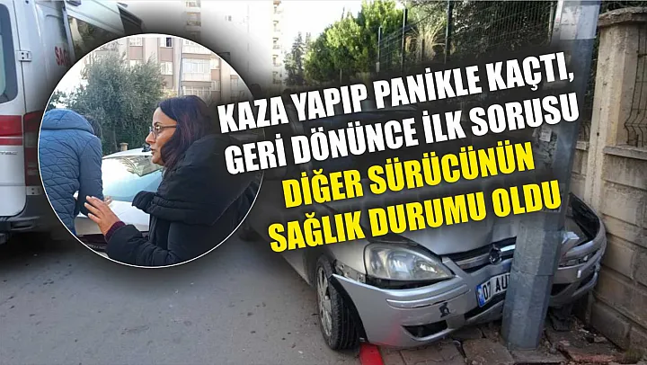 Antalya'da meydana gelen trafik kazasında panikle olay yerinden kaçan kadın sürücü, bir süre sonra yaya olarak geri döndü. Polislere kazayı kendisinin yaptığını belirten kadının ilk sorusu diğer sürücünün sağlık durumu oldu.