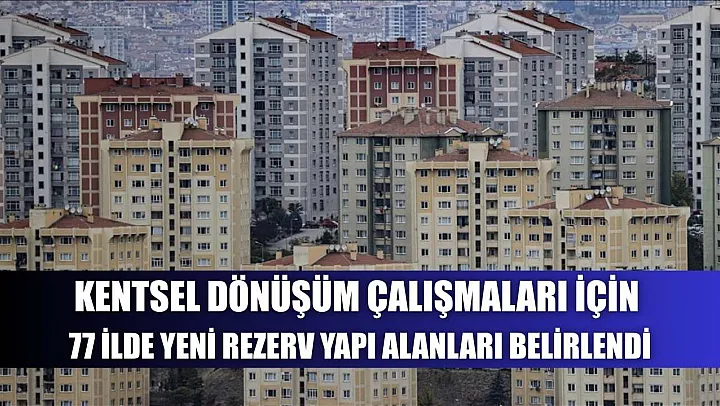 Çevre, Şehircilik ve İklim Değişikliği Bakanlığınca kentsel dönüşüm çalışmaları kapsamında yeni yerleşim alanı olarak kullanılmak üzere 77 ilde 64 bin hektar rezerv yapı alanı belirlendi.