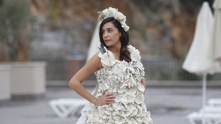 Fethiye'de ‘Çocuklar Gelinlik Giymesin, Okula Gitsin' projesi kapsamında kitap sayfalarından oluşan gelinlik tasarlandı.
