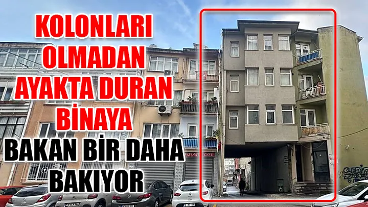 Kolonları olmadan ayakta duran binaya bakan bir daha bakıyor