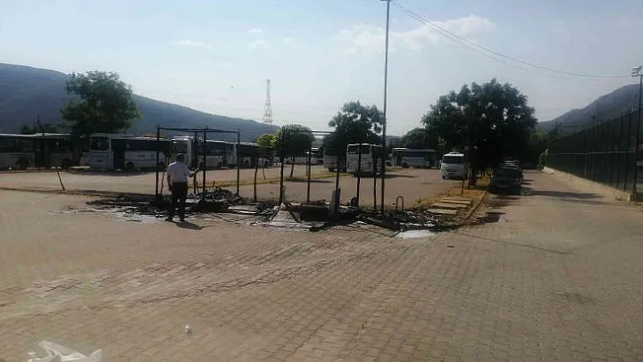 Muğla'nın Menteşe ilçesinde sosyal kültürel etkinliklerin yapıldığı alanda çıkan yangında konteyner tuvaletler küle döndü.