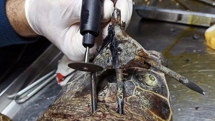 Koruma altındaki kaplumbağaya zıpkınlı vahşet