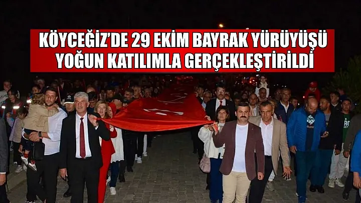 Muğla'nın Köyceğiz ilçesinde 29 Ekim Cumhuriyet Bayramı kutlamaları çerçevesinde organize edilen bayrak yürüyüşü, ilkokul, ortaokul, lise öğrencileri ve vatandaşların katılımıyla coşkulu bir şekilde gerçekleşti.