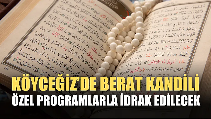 Berat Kandili vesilesiyle, Köyceğiz Balcılar Mahallesi Camiinde perşembe günü saat 10.30'da bayanlara yönelik Kandil özel programı, Akşam namazından sonra da tüm cemaate yönelik olarak Merkez Hacıbey Camii'nde; Toparlar Mahallesi Arıkbaşı Camiinde ve yine, Beyobası Mahallesi Merkez Camiinde Köyceğiz'deki tüm camilerde olduğu gibi Kandil özel programı gerçekleştirilecek.