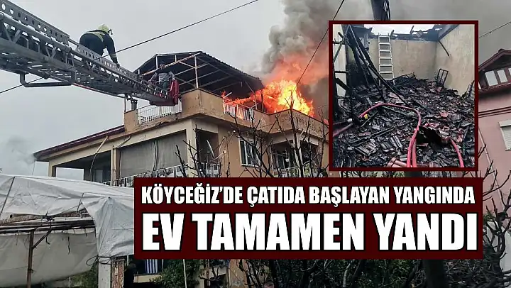 Muğla'nın Köyceğiz ilçesinde evin çatı katında başlayan yangın sonrası ev kullanılmaz hale geldi. Yangın sonrası evin içindeki eşyaların tamamı yandı.