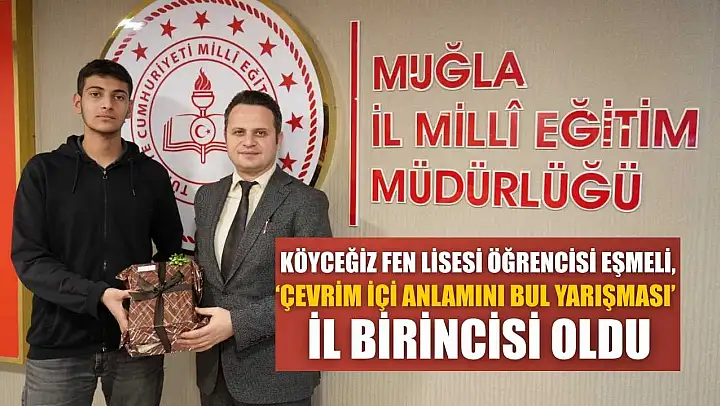 Muğla'nın Köyceğiz ilçesinde Milli Eğitim Bakanlığı Ortaöğretim Genel Müdürlüğü tarafından yürütülen Dilimizin Zenginlikleri Projesi kapsamında düzenlenen Çevrim İçi Anlamını Bul yarışmasında Fen Lisesi öğrencisi Furkan Eşmeli il birincisi oldu.